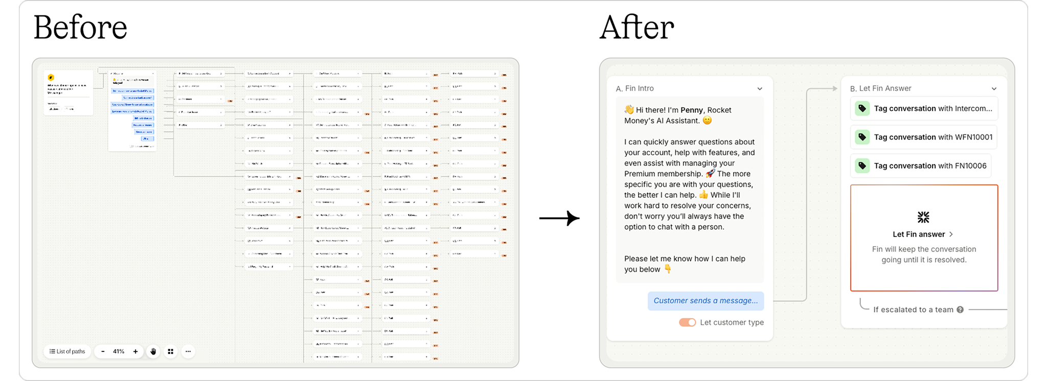 The team started small, introducing Sweo, Intercom’s AI Agent, into just 10% of conversations. From there, they expanded to key workflows that could be clearly scoped and carefully controlled, like billing management, app troubleshooting, and account access requests.