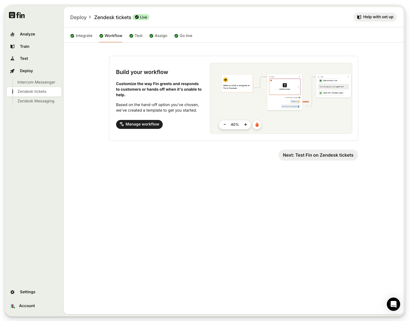 Go to Deploy > Zendesk tickets.