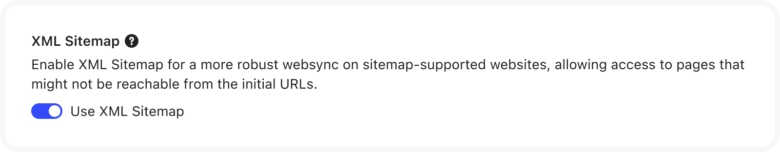 To access pages that might not be reachable from the initial URLs, you can enable XML Sitemap for a more robust web sync on sitemap supported websites.