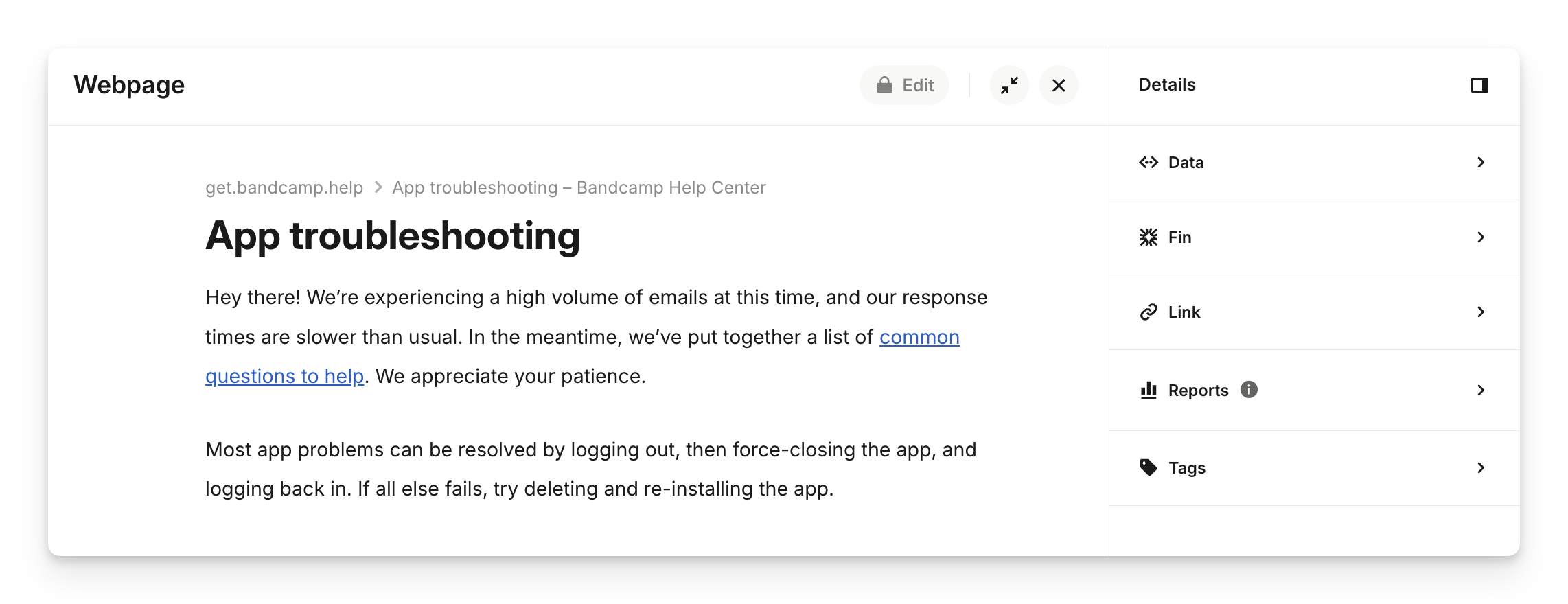 Note: A successful sync doesn’t always mean we were able to scrape all of the content on the page. If you want to confirm full coverage, we recommend previewing Sweo with answers you expect it to find from that page.