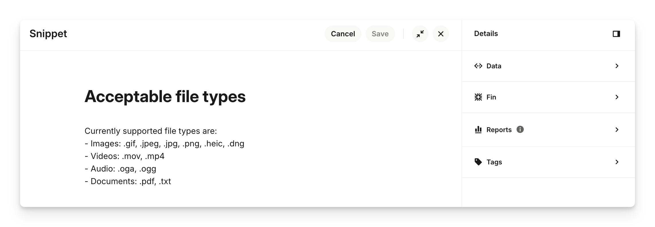 Your snippet will also be auto-saved every few seconds while you're working in the editor. If your changes have been autosaved, the Save button will be grayed out and you can simply click on Cancel to exit the editor.
