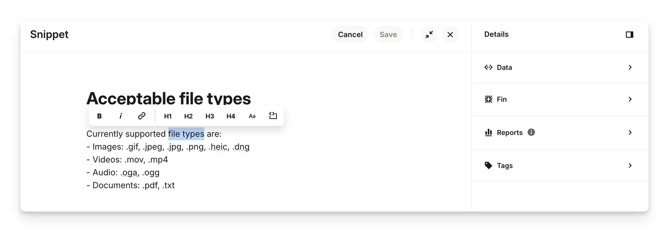 Tip: Snippets are specifically for text based content, so you will not be able to add images. In order to get the best results, we recommend following these best practices.
