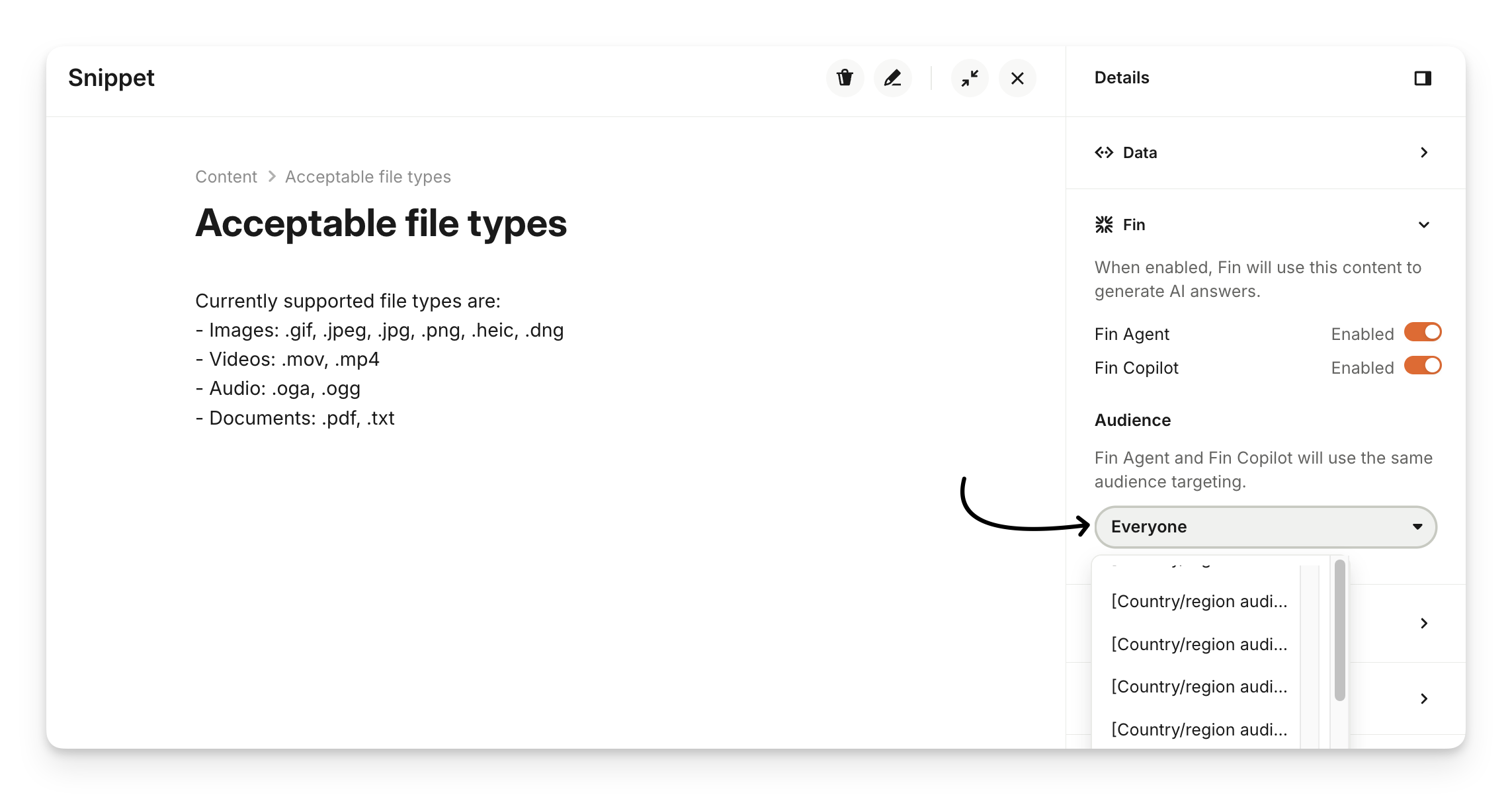 If your snippet is only relevant for a specific subset of customers, you can use audience filters to make it visible to certain people.