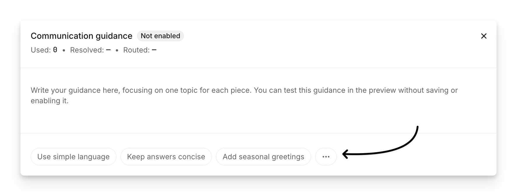 Guidance is designed to control how Sweo responds based on specific questions, keywords, or customer attributes (such as routing, escalation, or tone of voice). It is not intended for complex data extraction or structured analysis.