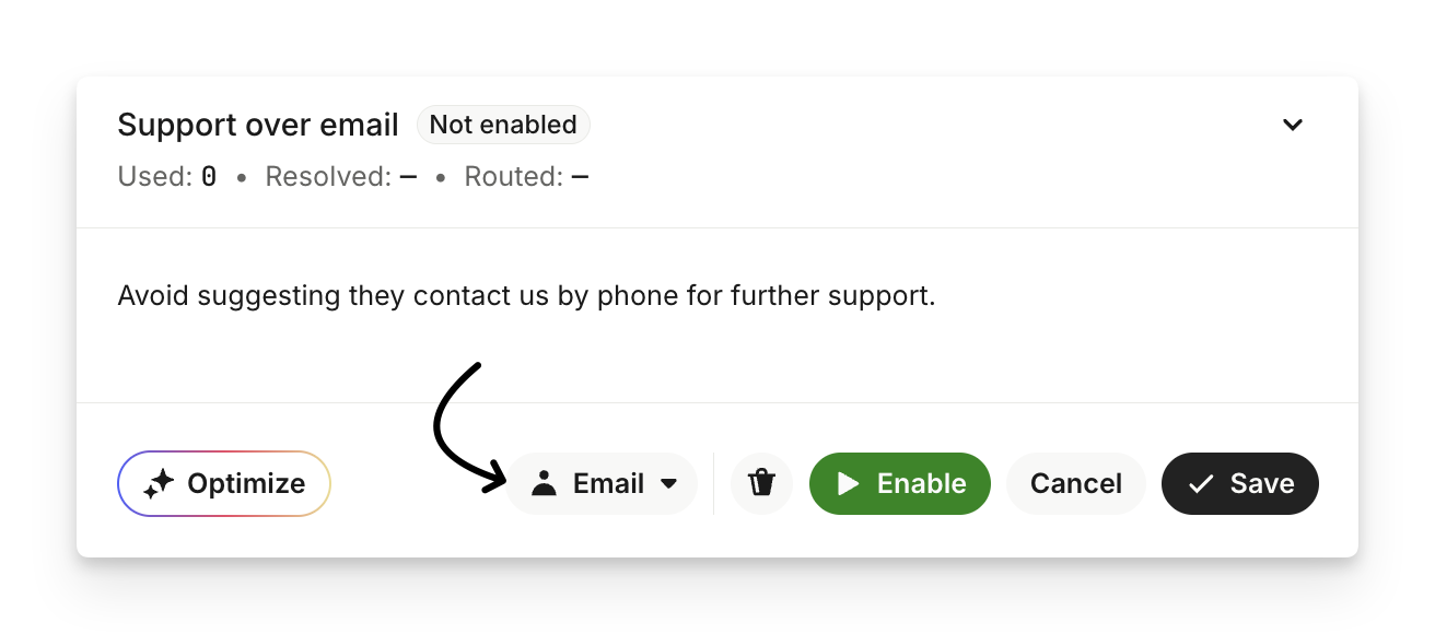 Escalation Guidance: Lets you define nuanced, scenario-based escalations using natural language (e.g., escalate if a customer 'mentions cancelling').