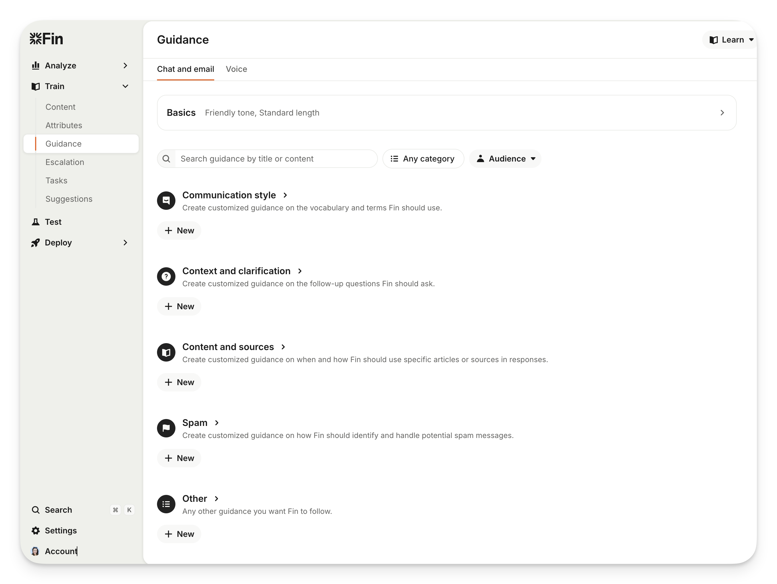 Go to Train > Guidance and select the + New next to the appropriate guidance category.