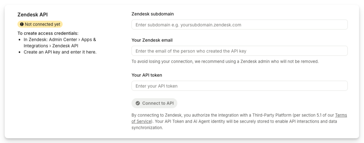 Under Zendesk API, select Connect.