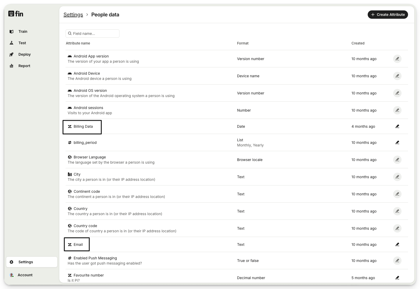 Its also possible to create new custom people data attributes within the Sweo platform – simply hit "Create attribute" in the top right.