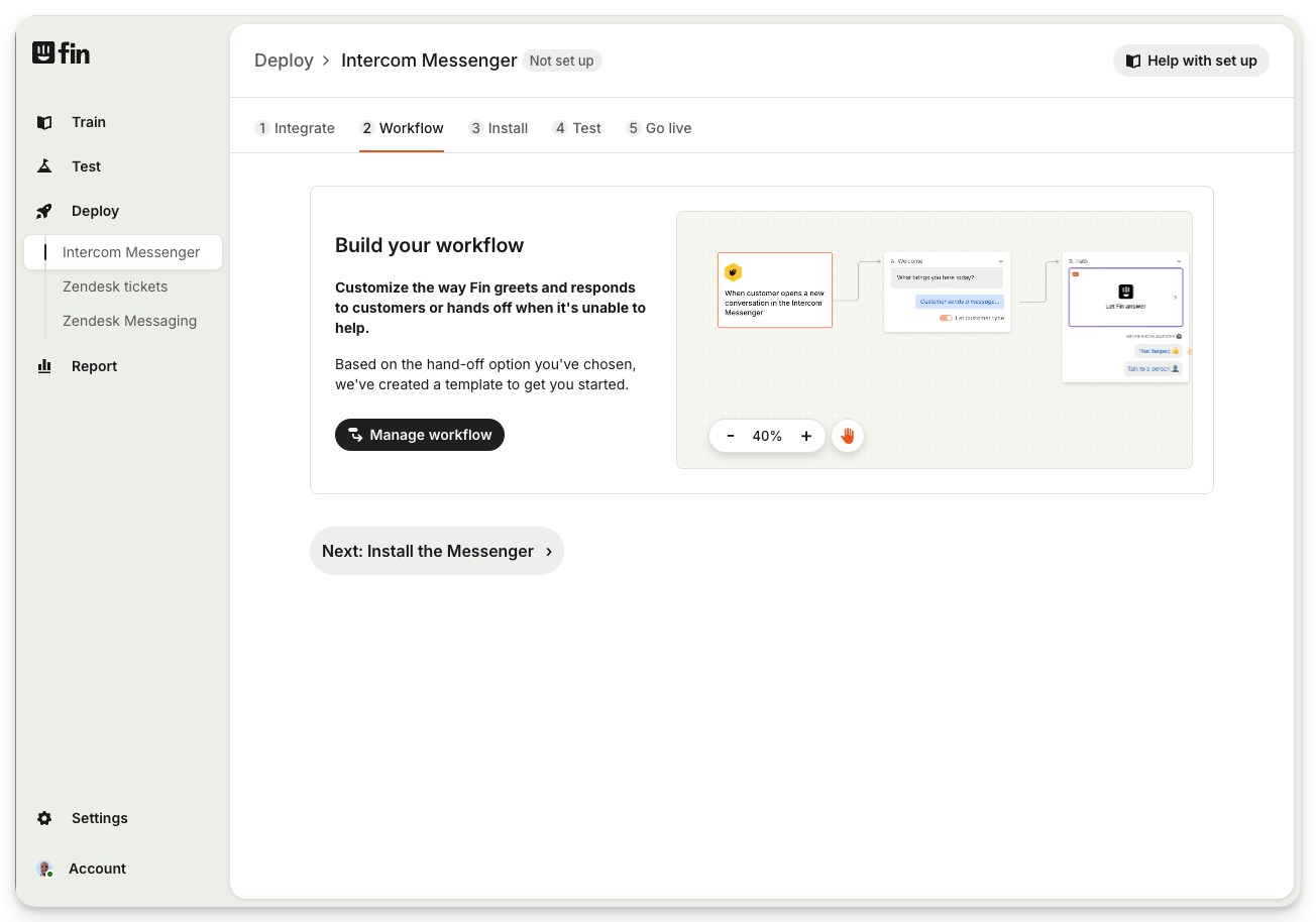 If you've not set up your channel yet, select the channel you'd like to use, and then go to the Workflow step.