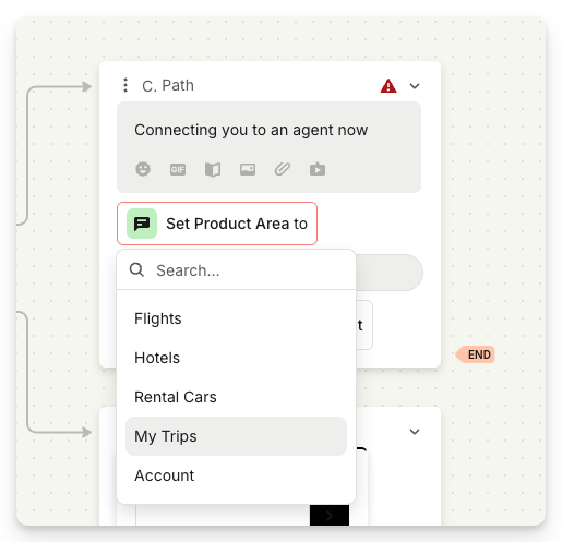 2. Add a "Hand off to Zendesk agent" or "Create Zendesk ticket" step to the end of your workflow