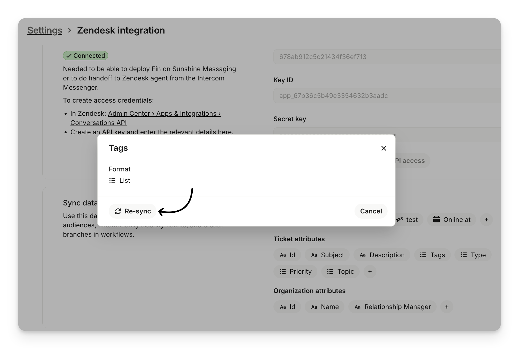 Re-sync list data with Zendesk