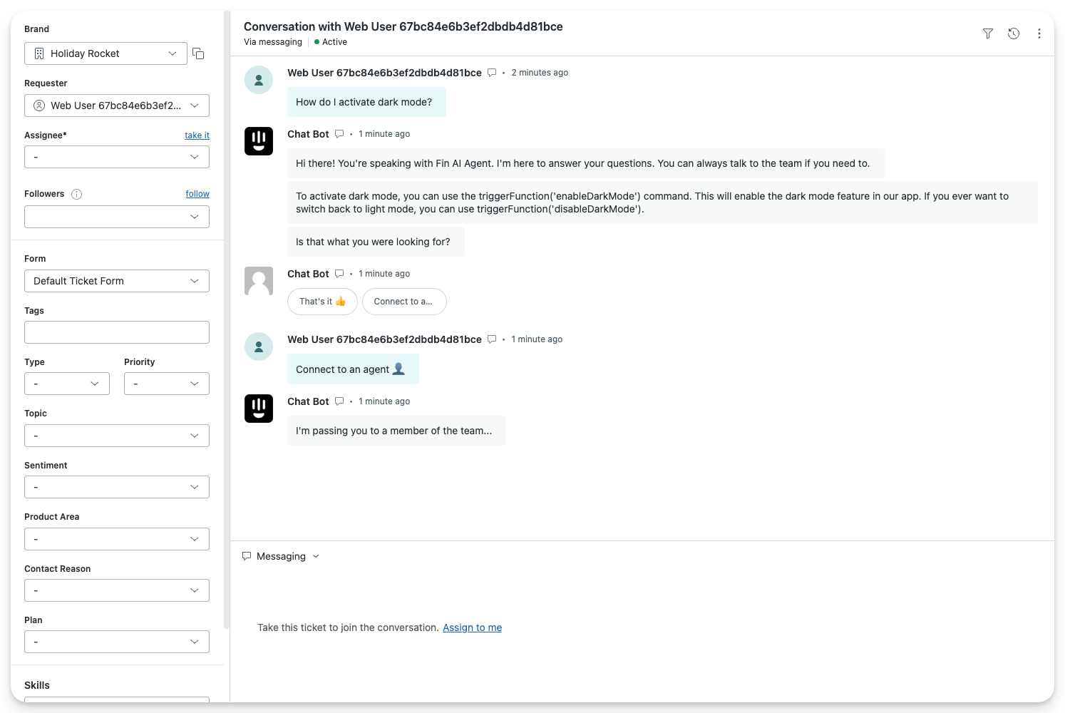 Hand off to Zendesk agent