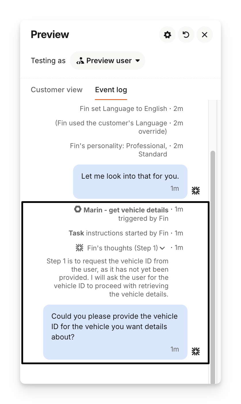 When creating Tasks for Sweo, you can preview the task using the Preview button in the top right. This allows you to see how the task will trigger, Sweo's thought process, and what Sweo's output would look like to a customer.