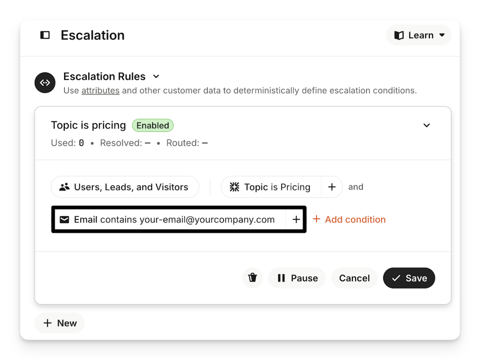 Once you've confirmed it works, you can update the audience condition to activate the escalation guidance for customers.