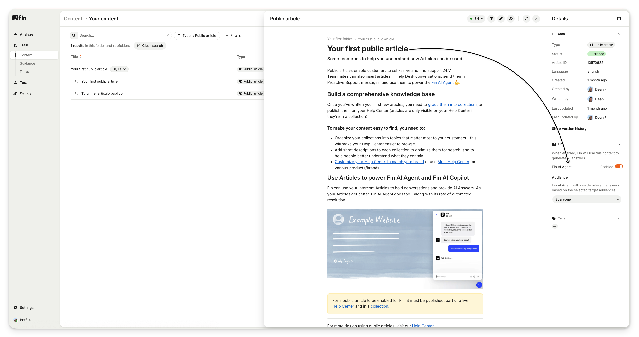 Add content and make it available for AI Agent