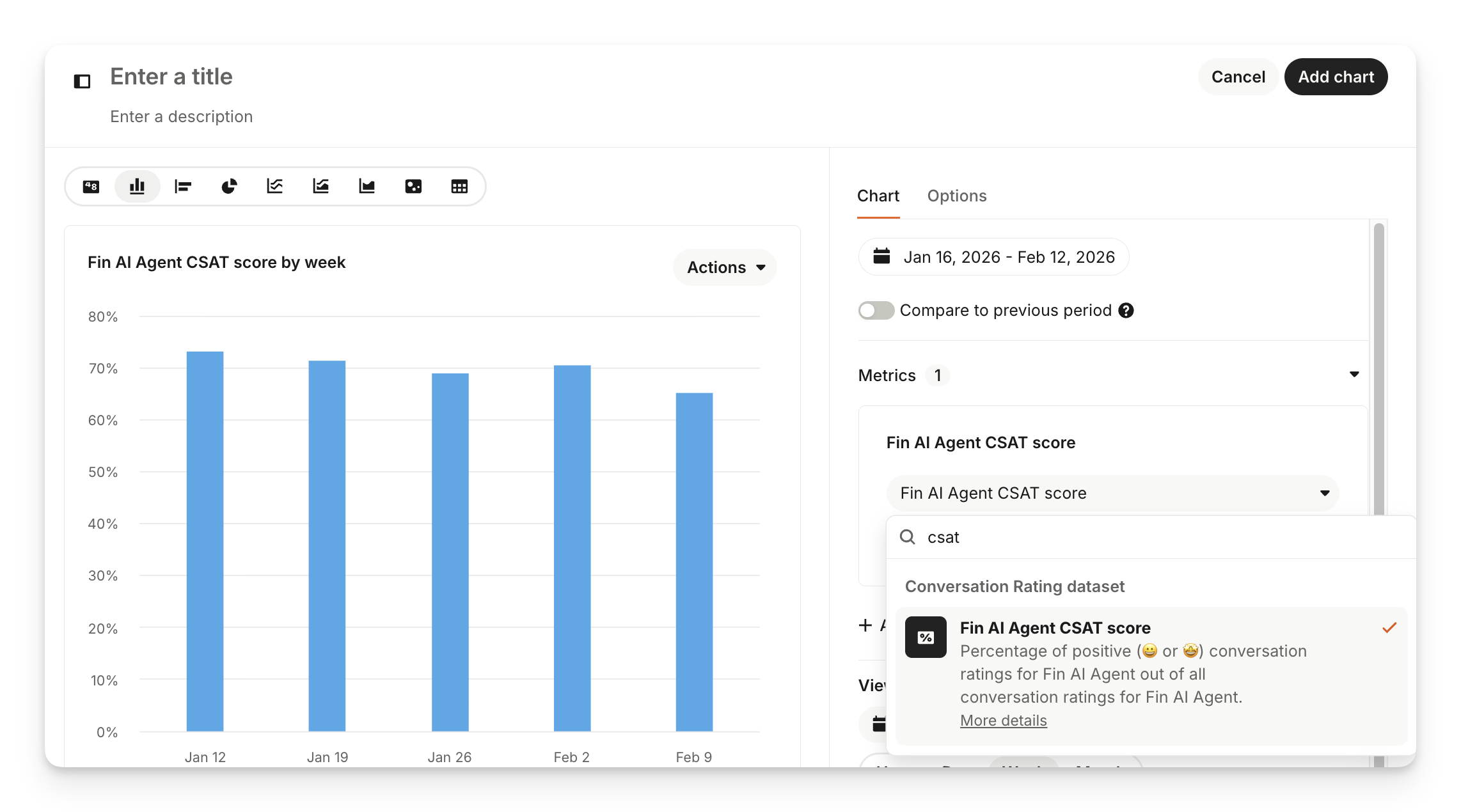 You can see Sweo CSAT performance when using the Custom Report charts: