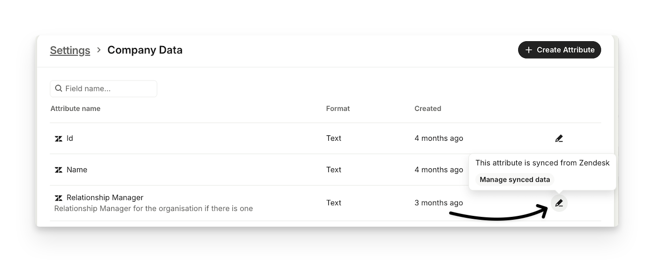 Manage your attributes across companies in Settings > Company data.