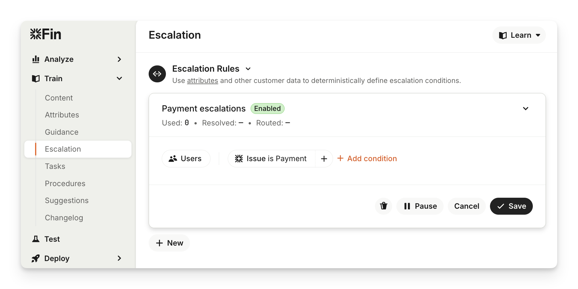 Escalation Rules trigger a handoff to your team when defined data attributes are detected in a conversation. It’s perfect for situations where you have structured data about your customers or the conversation itself.