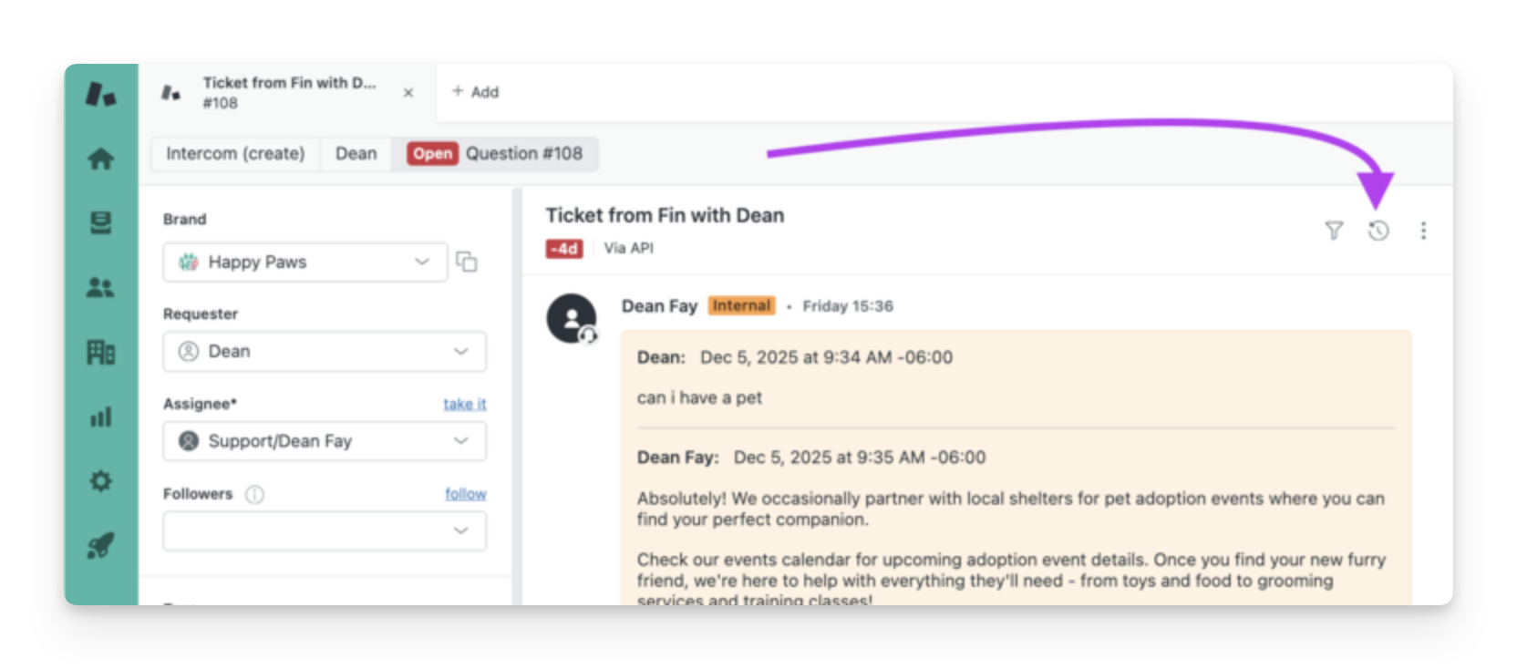 Note: With Zendesk Messaging integration, conversations remain hidden until customers ask to talk to a person - this follows Zendesk's standard Answerbot behavior.