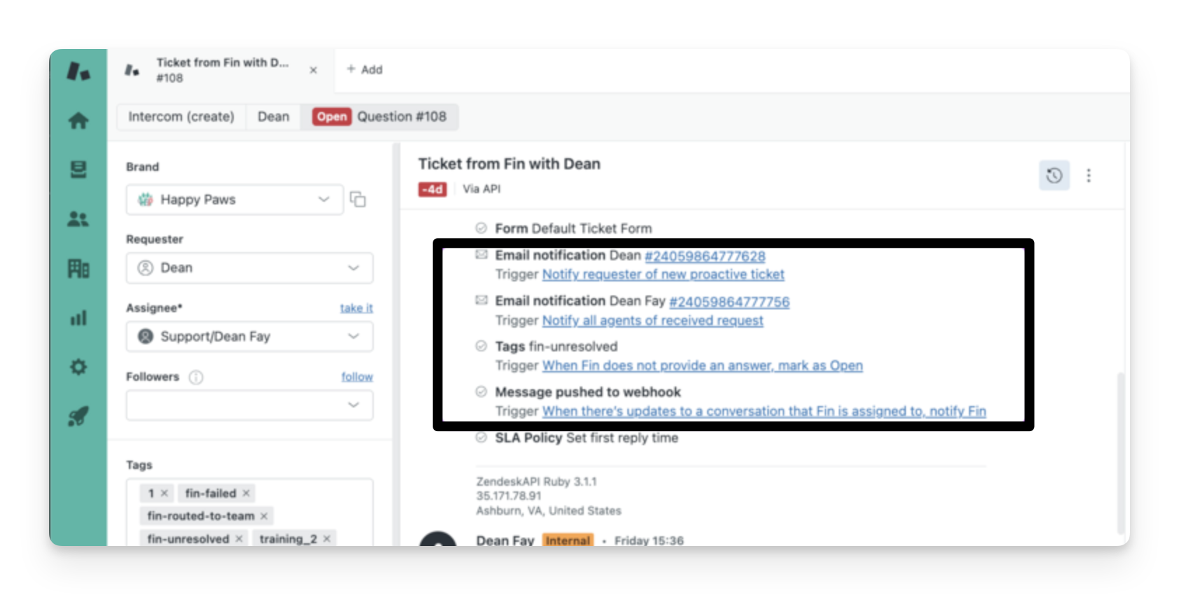 How do I view which Zendesk triggers occurred within a conversation?