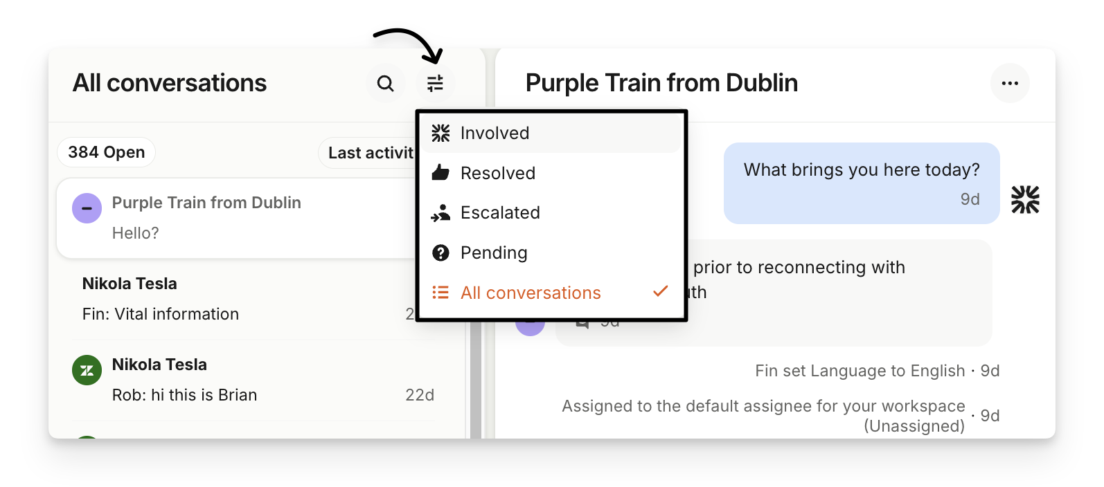 You can easily filter the conversations list by: