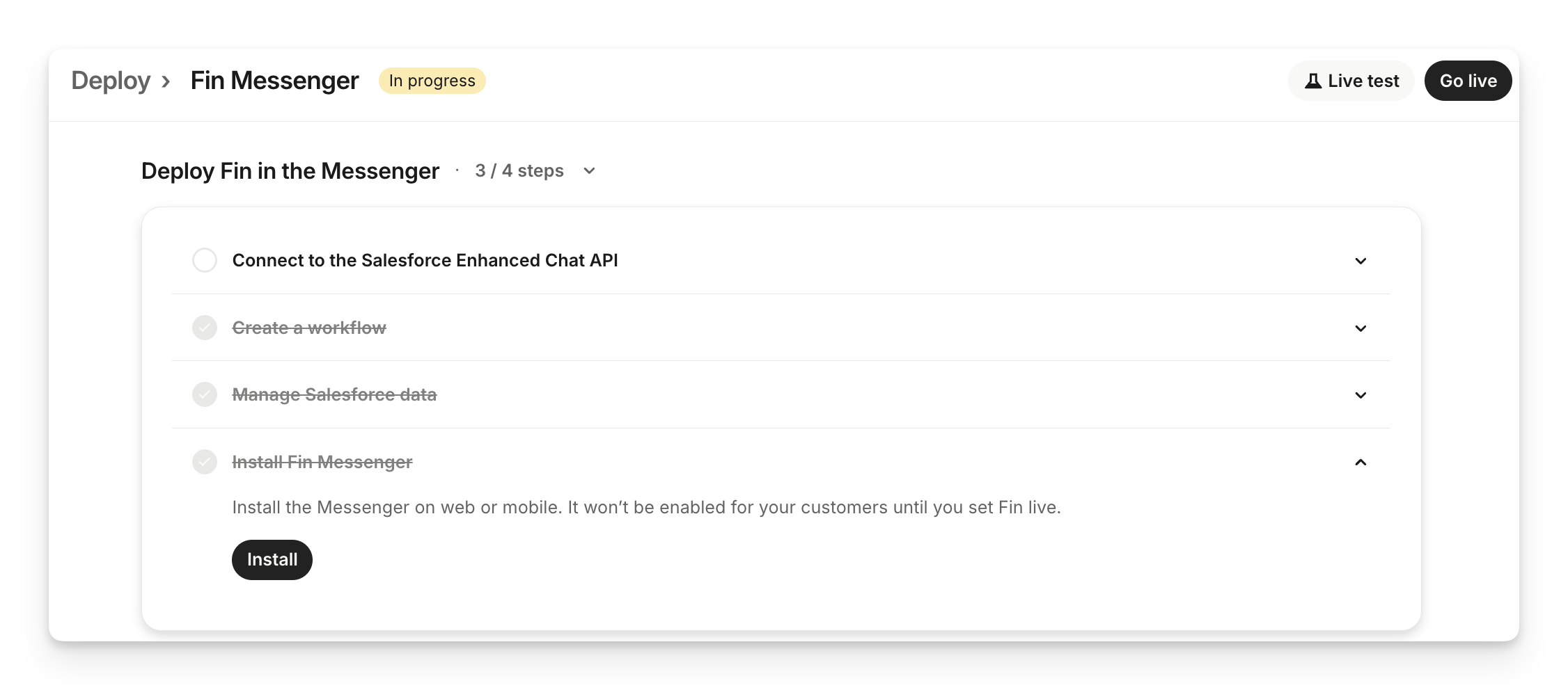 Go to Deploy > Sweo Messenger > Install in your Sweo workspace.