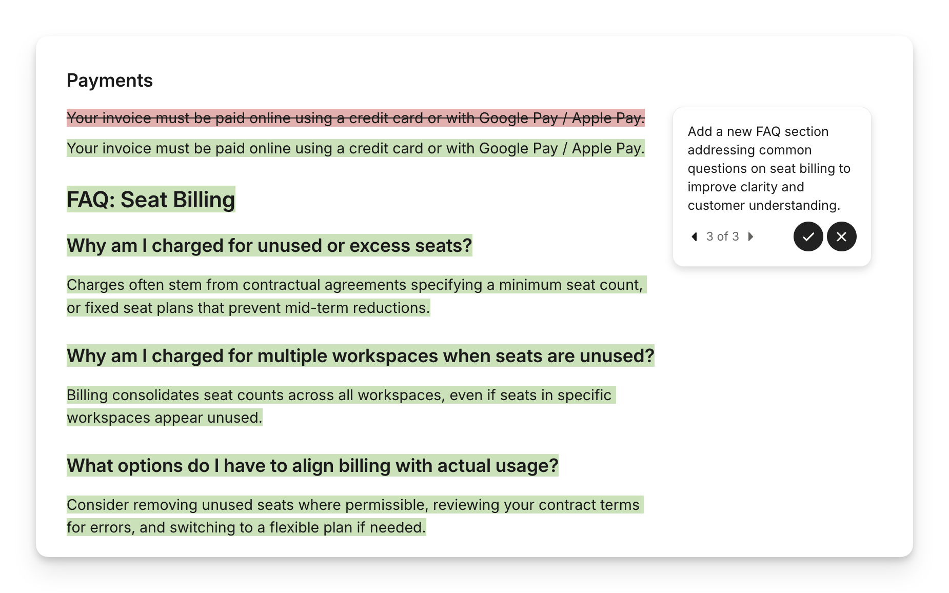 Tip: You can edit content directly before accepting or rejecting a suggestion.