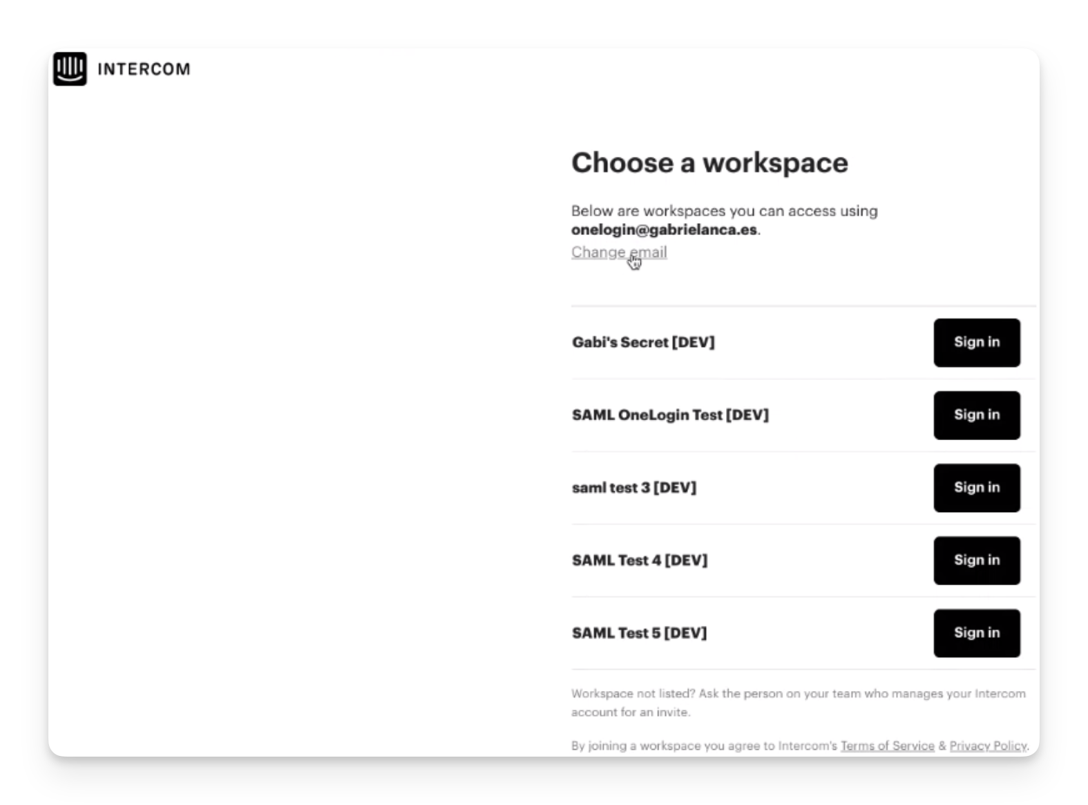 If the email matches multiple workspace with SAML SSO, then you'll see the workspace selector where you can select the workspace you want to log in to.