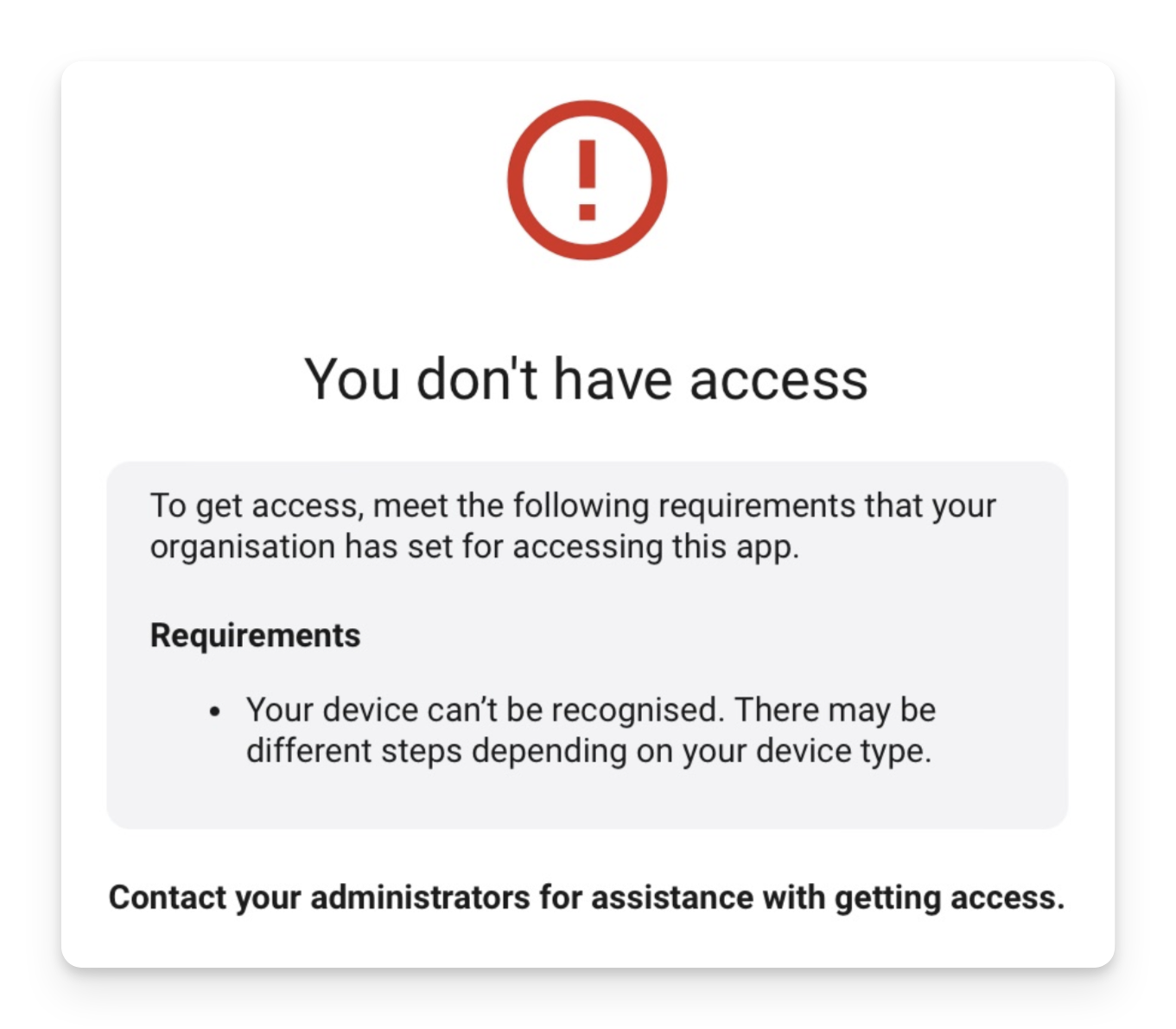 If you are using Google Workspace as your SSO provider and you see an error message stating that you don’t have access (similar to the image below), you can turn on remediation messages in order to further understand the reason for the error.
