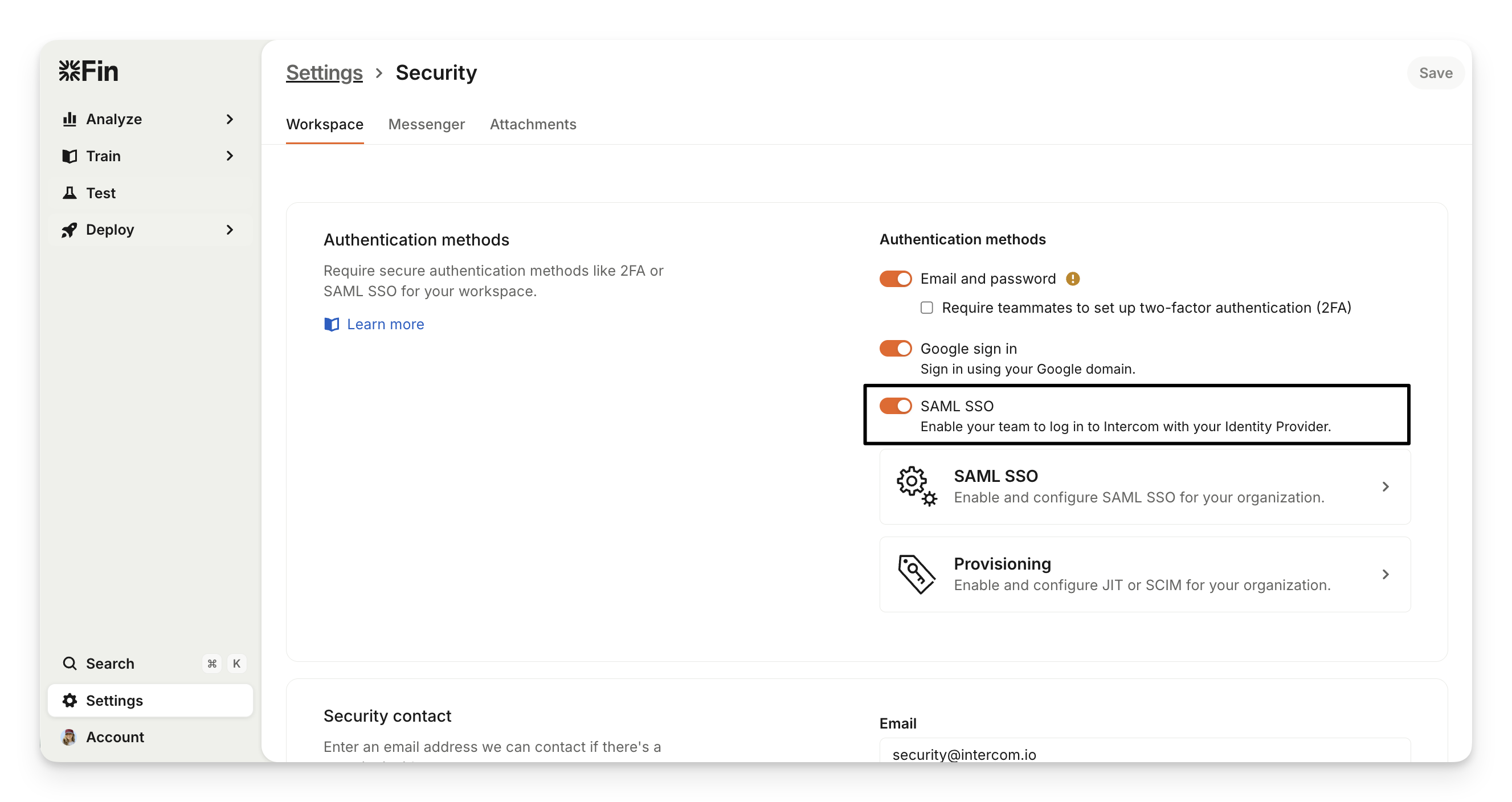 To enable this, go to Settings > Security, make sure SAML SSO is toggled on, and click on Provisioning.