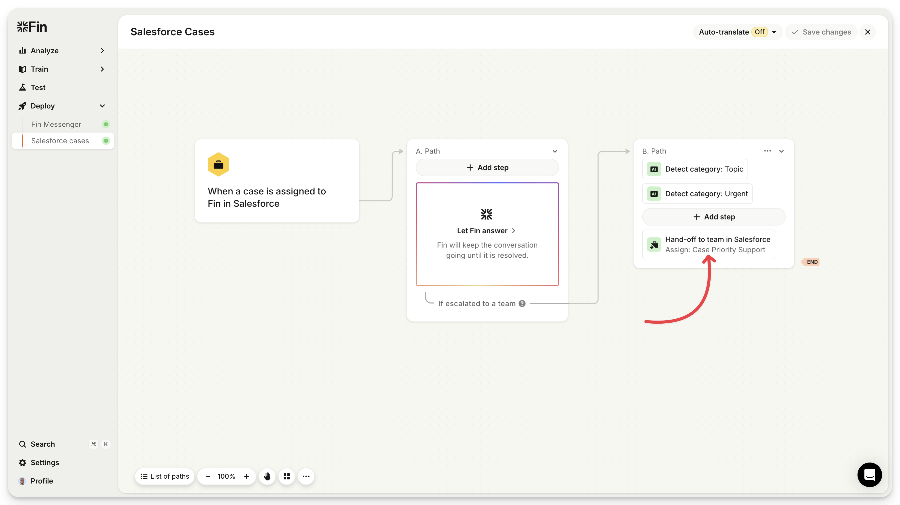 | Hit "Add step", and select "Hand-off to team in Salesforce".