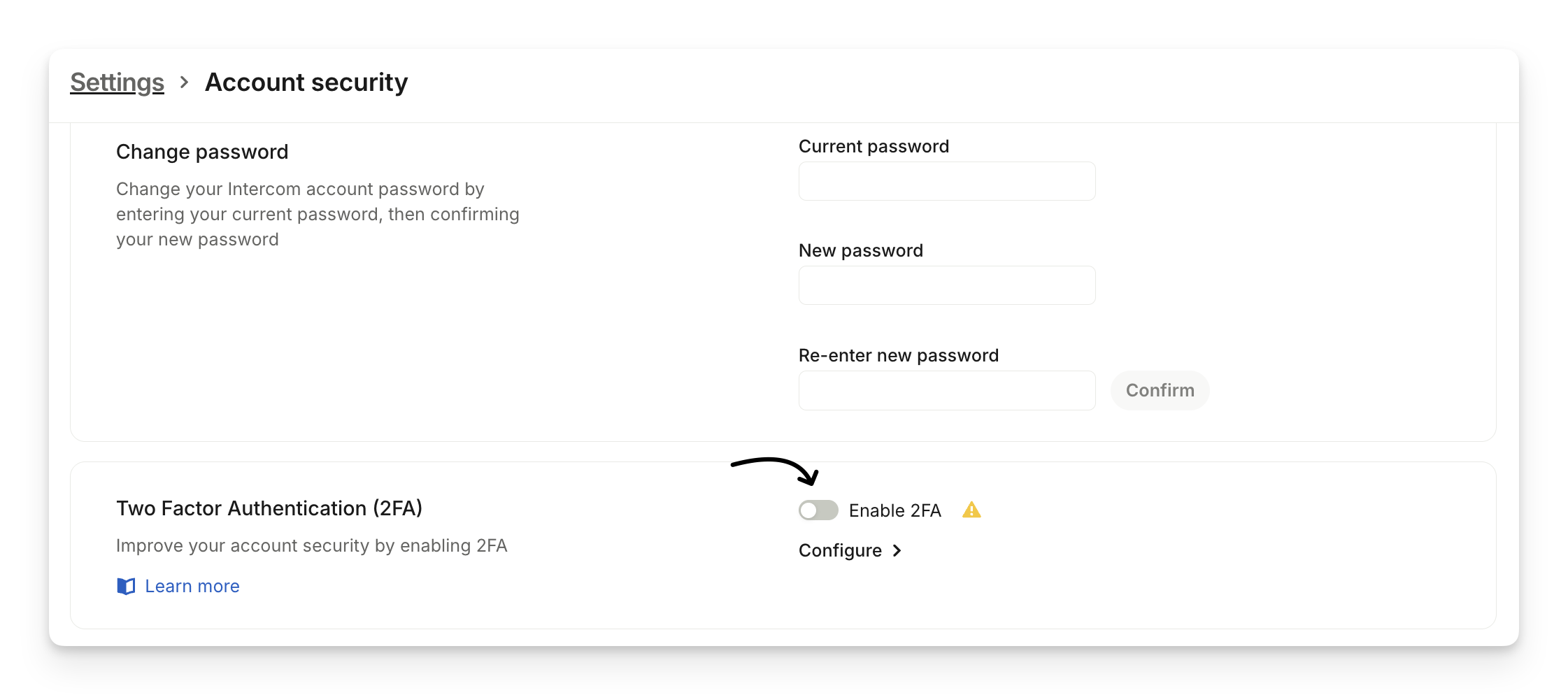 You can enable 2FA on your own Sweo account, separate from the settings of any workspace you're a member of, from Settings > Account security under the Two Factor Authentication (2FA) section.