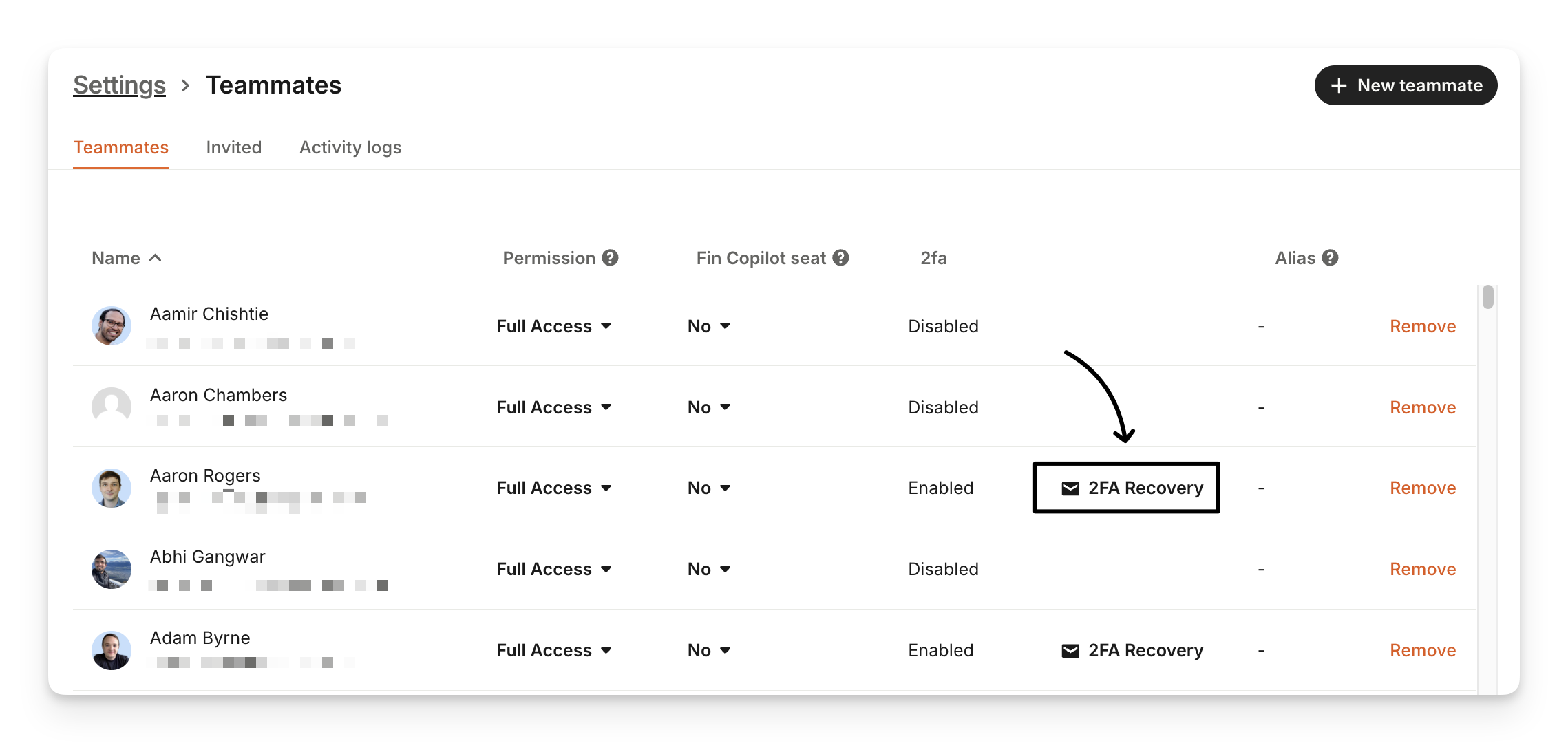 If recovery codes fail, the administrator can reset the failed login attempts and issue a new recovery code. Encourage the teammate to reset and reconfigure their 2FA setup to prevent future issues. Follow these steps: