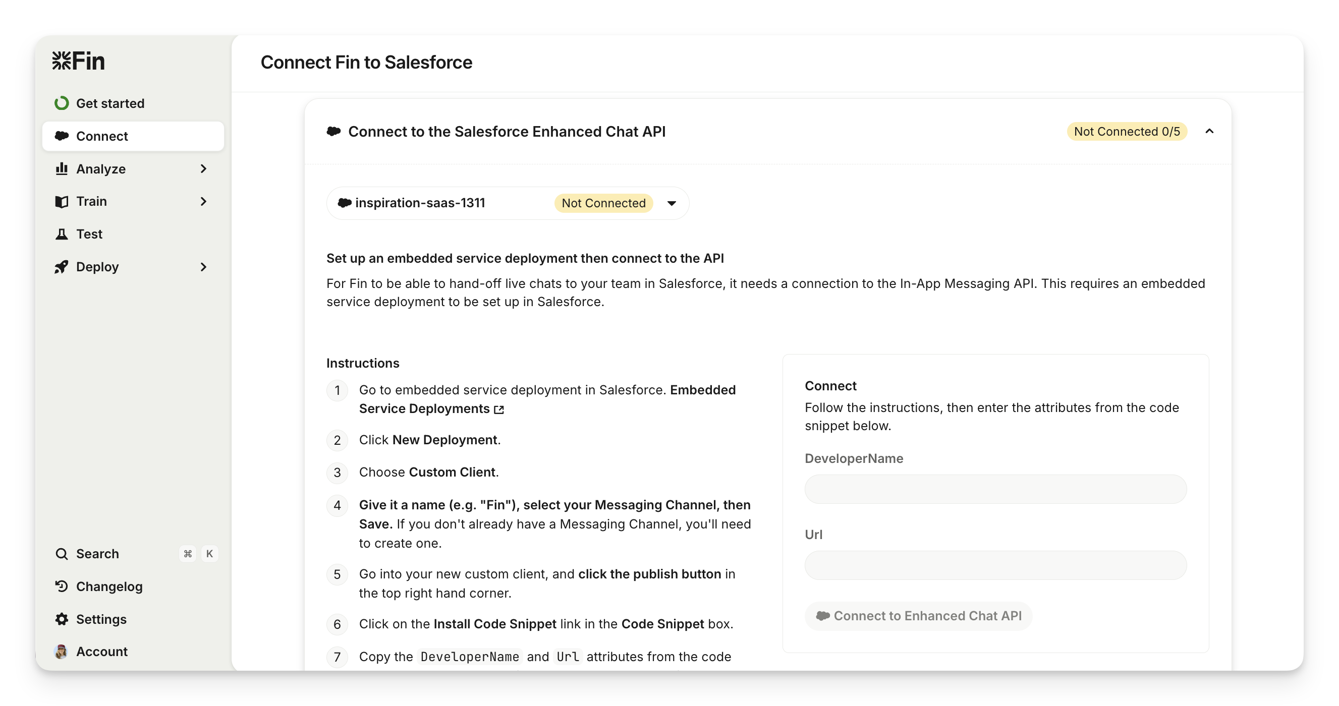 Copy the Developer name and URL into the form to connect.
