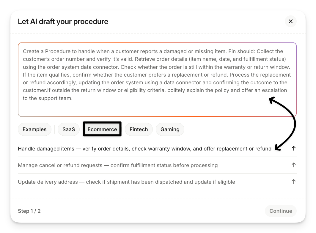 Select Let AI draft your procedure.
